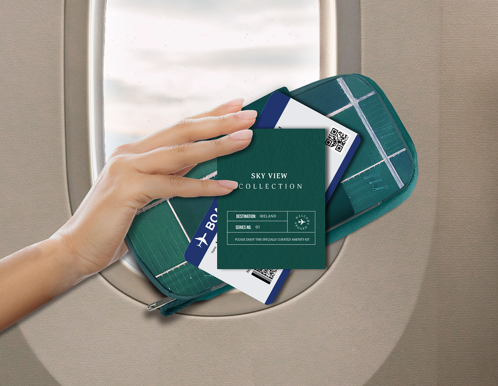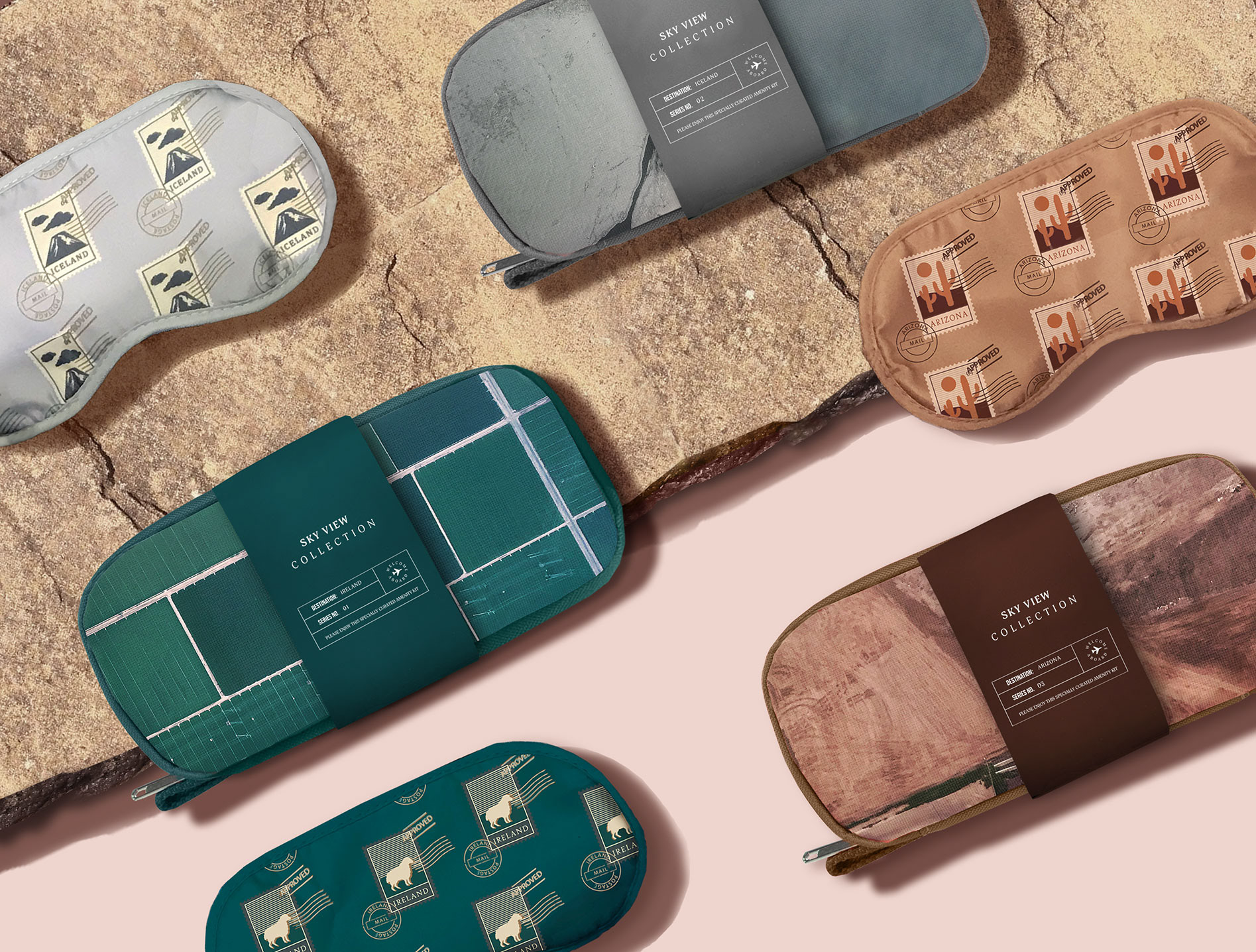 This collection was based on capturing the experience of flying. This project included bag and eye mask design, print collateral such as welcome bag wrap, welcome card and advertising.